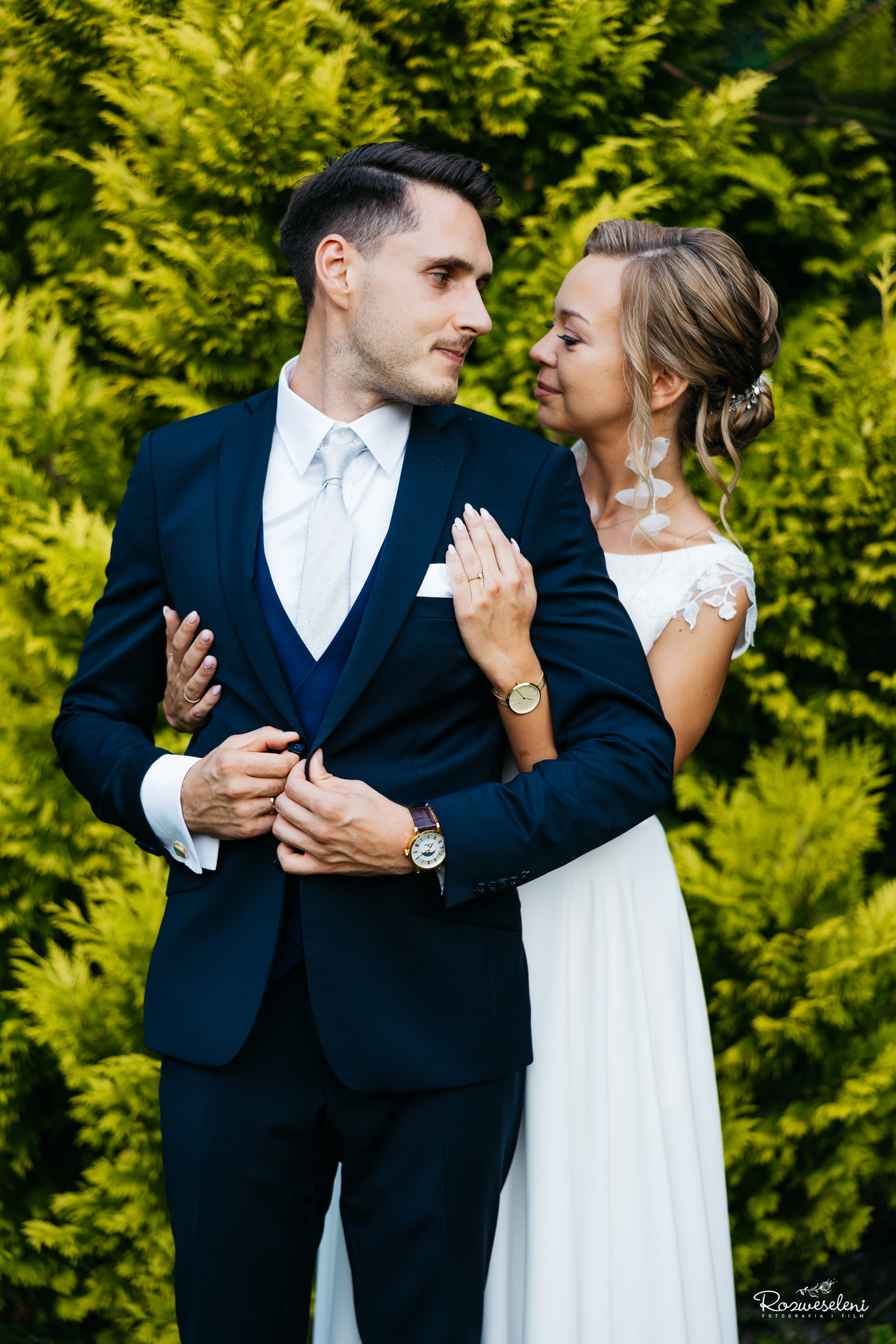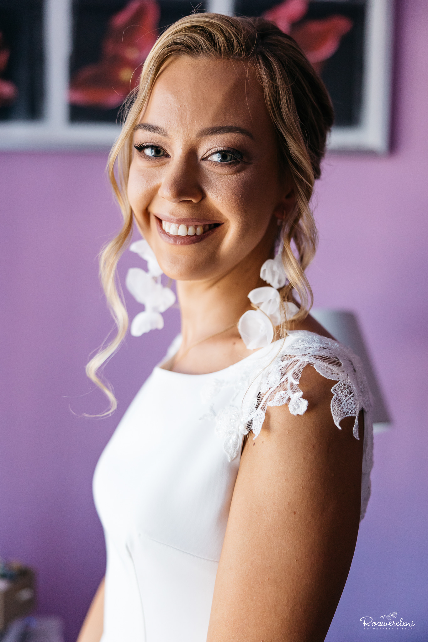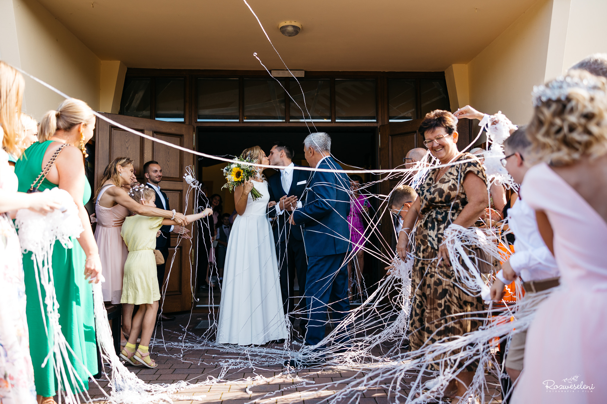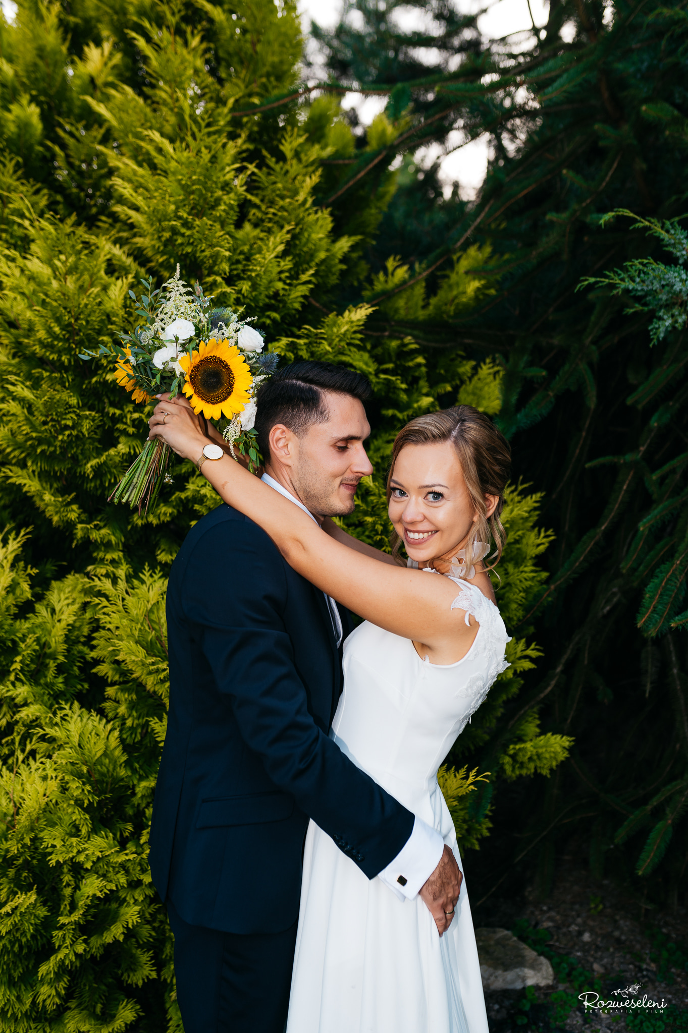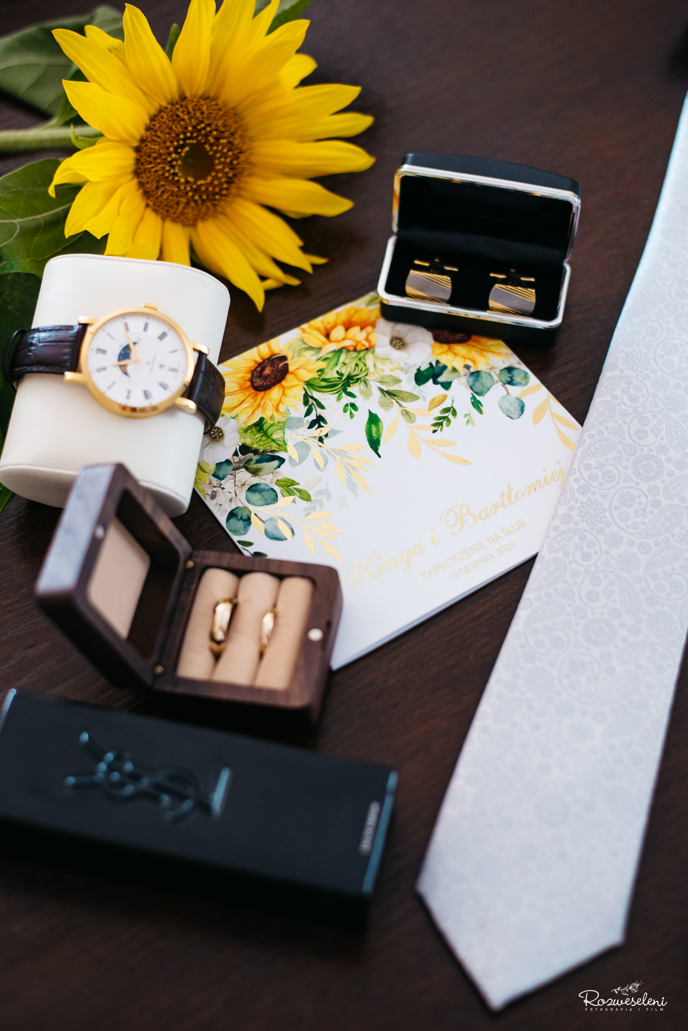 Zaczęło się od sesji narzeczeńskiej – trochę nieśmiałości, trochę wątpliwości („my? przed obiektywem?”), ale… wystarczyło kilka chwil, żeby pokazać, jak pięknie potrafią być sobą. Kinga i Bartłomiej to duet stworzony do zdjęć – naturalni, zakochani po uszy i… słoneczni! Bo właśnie słoneczniki królowały tego dnia – na zaproszeniach, stołach, a nawet w bukiecie Panny Młodej!